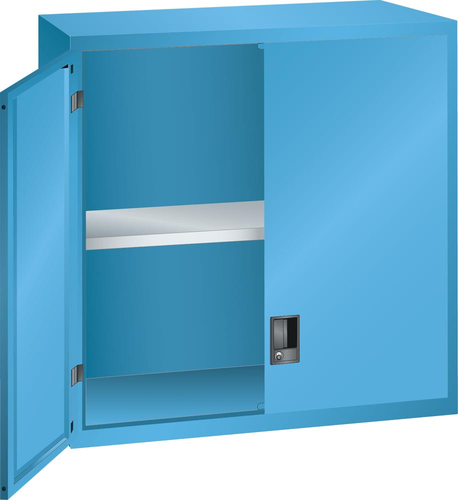 Aufsatzschrank mit Vollblechflügeltüren, BxTxH 1023x572x1000 mm, 1 Verstellboden, RAL 5012, passend zu Schubladenschrank 54x27 E