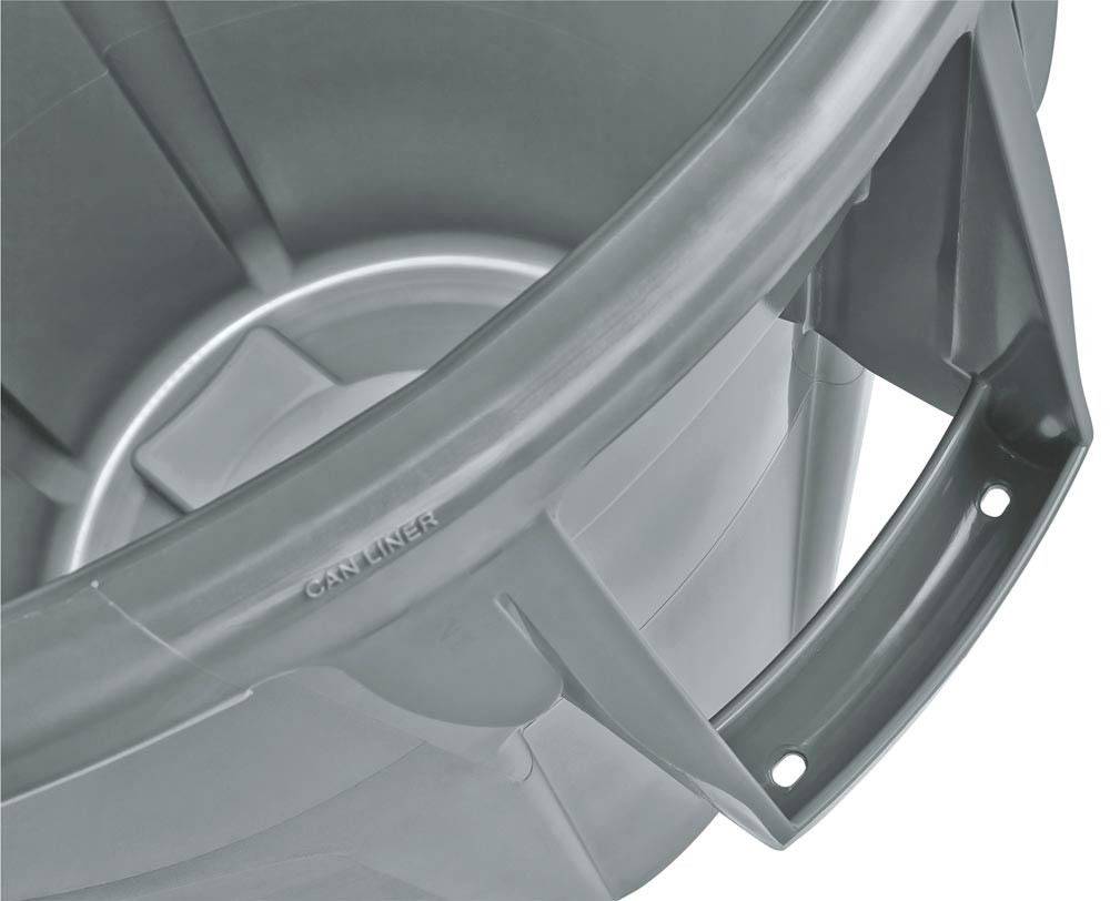 · Aus Polyethylen, eine komplette Palette vielseitig einsetzbarer, robuster Kunststoff-Rundbehälter · Stoß- und kratzfest, kälte- und formbeständig, für Temperaturbereiche von -29°C bis +60°C geeignet ∙ Zusätzliche Festigkeit und Strapazierfähigkeit durch Randverstärkung · Doppelrippenboden für erhöhte Stabilität und Ziehfestigkeit · Starke, integrierte Griffe für leichtes, rutschfestes Anheben · Im Leerzustand platzsparend ineinander stapelbar · Mit Müllsackklemmen · Lüftungskanäle für eine 50 % leichtere Müllsackentnahme