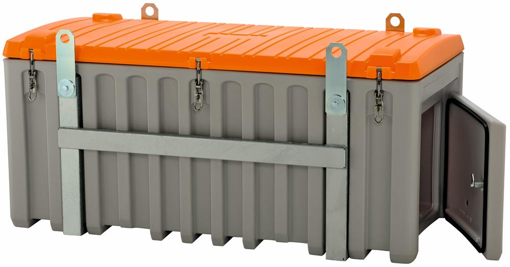 ∙ Behälter in grau/orange aus hochwertigem Polyethylen ∙ Wahlweise mit oder ohne Seitentür ∙ Zum Transport und Aufbewahren von Werkzeugen und Kleinteilen ∙ Ideale Länge, auch für Schaufeln ∙ Optimale Maße für Pritschenfahrzeuge ∙ Stapelbar, mit Arretierungsnocken ∙ Mit Staplertaschen und integrierten Handgriffen ∙ Deckelanschlag ∙ 3 Exzenterverschlüsse ∙ Durch eine umlaufende integrierte Dichtung absolut spritzwasserdicht