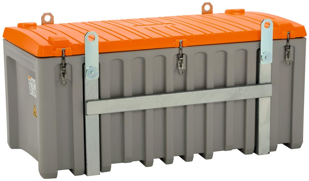 Materialbox, kranbar, Polyethylen, grau/orange, Volumen 750 l, BxTxH 1700x860x800 mm, Gewicht 75 kg, ohne Seitentür E1982347