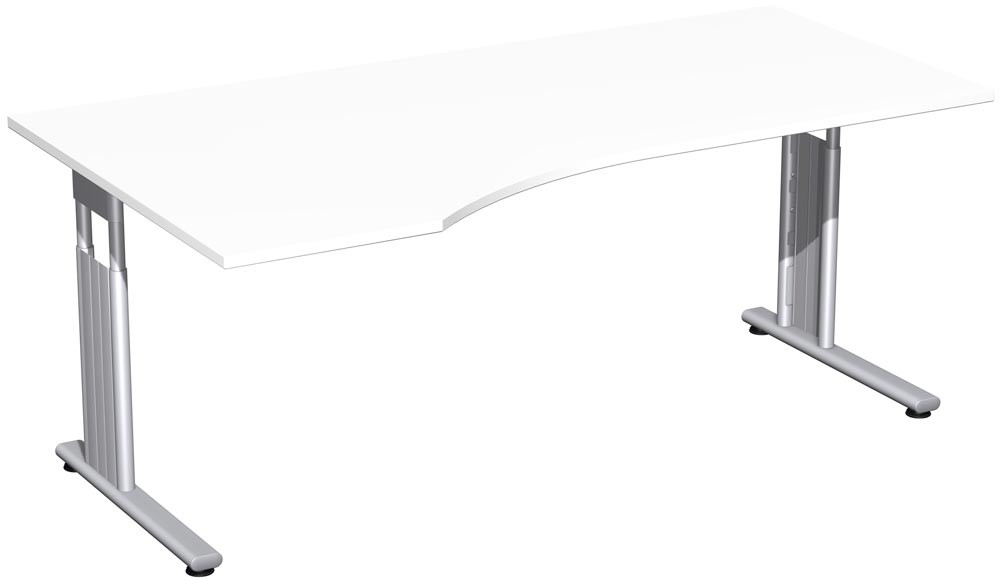 PC-Schreibtisch, BxTxH 1800x1000x680-820 mm, links 425 mm, höhenverstellbar, Platte weiß, C-Fuß-Gestell silber