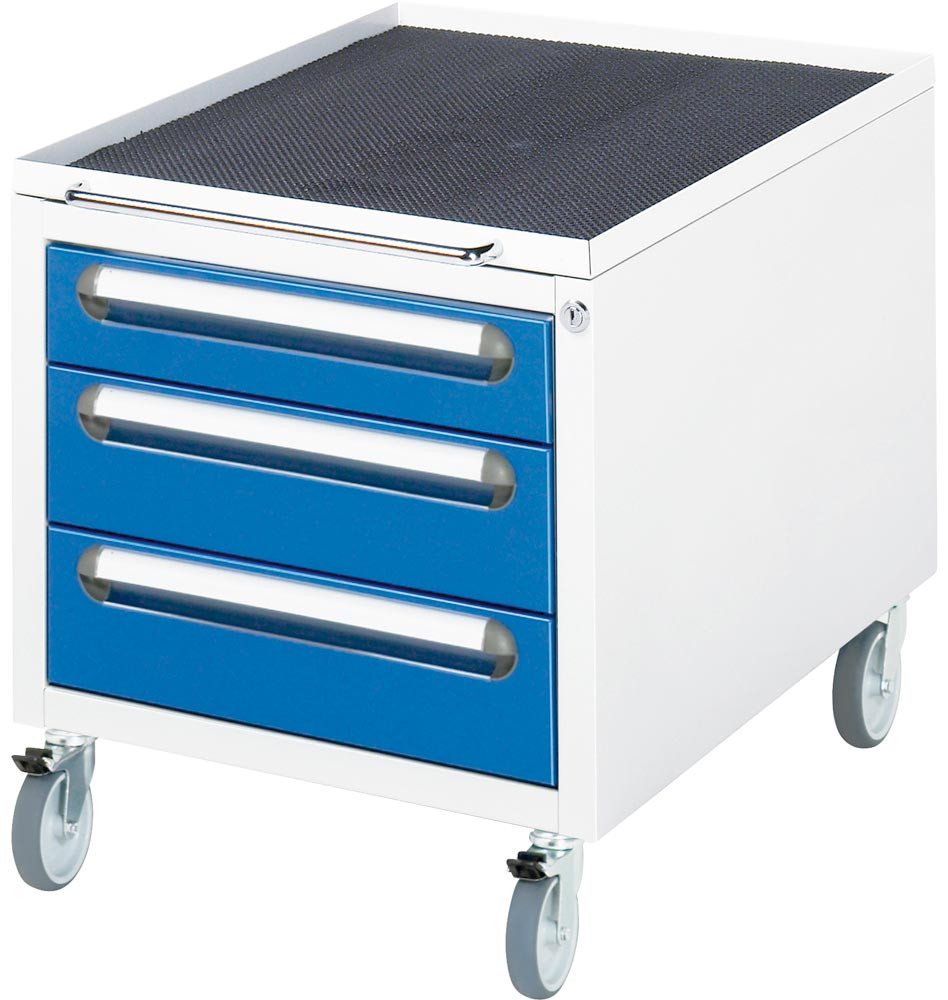 Rollschrank BxTxH 480x600x540 mm, 3 Schubladen 1x90, 2x120 mm, Gehäuse RAL 7035/5010 E6409015