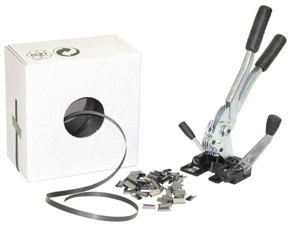 Umreifungs-Komplett-Set, PP 13 mm, Spann-Verschlussgerät, 1000 Meter Band, 2000 Hülsen E811184
